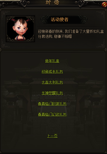 新的一年开始啦,相信各位一定期待新年的礼物吧。停下来看一看我们的礼物吧。我们将在上架丰富珍稀的新春礼包,开放当天可在主城-活动使者处查看